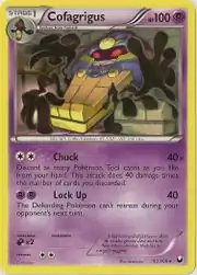 Cofagrigus (Japanese: デスカーン Desukarn) is a Psychic-type Stage 1 Pokémon card. It is part of the Dark Explorers expansion.