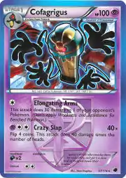 Cofagrigus (Japanese: デスカーン Desukarn) is a Psychic-type Stage 1 Pokémon card. It is part of the Plasma Freeze expansion.