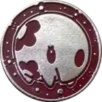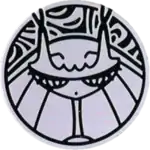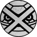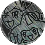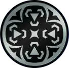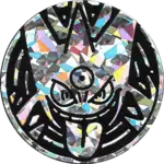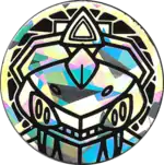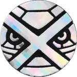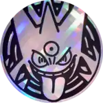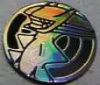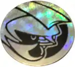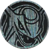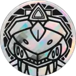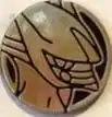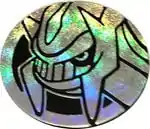 Metal Reward Coin Silver Non Holofoil, Black-backed Coin featuring symbols. Awarded to the player when reaching Metal Energy Level 1