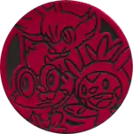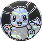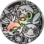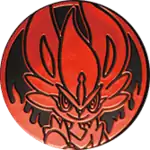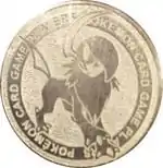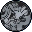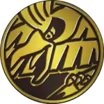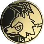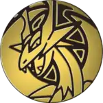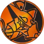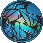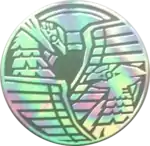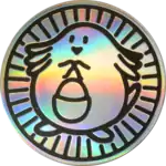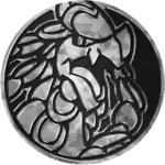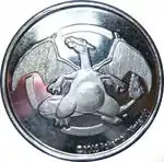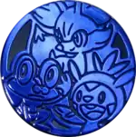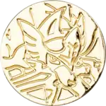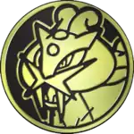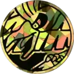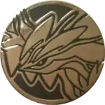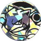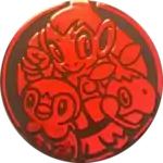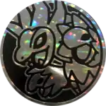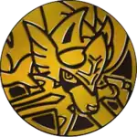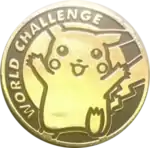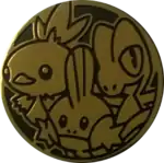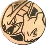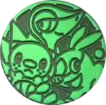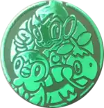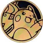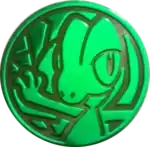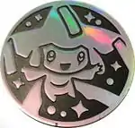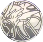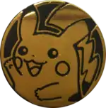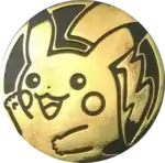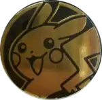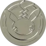 Coins (Japanese: ポケモンコイン Pokémon Coin), also officially recognized as metallic coins, are one of two types of randomizers that players can use during a Pokémon TCG match. The majority of coins released for the Pokémon Trading Card Game are made of plastic with a metallic Pokémon design on the front, which can be of anything from starter Pokémon and Legendary Pokémon to designs commemorating a specific event or featuring the original Energy Symbols. Although the majority of coins are made with the current standard of a plastic backing, throughout the history of the Pokémon Trading Card Game, coins made of cardboard and coins made of metal have also been released. Making coins out of these materials has since fallen out of practice for The Pokémon Company and their subsidiaries, thus most are not recognized as standard randomizers for TCG matches and must be approved by both players. Additionally, the head judge of the tournament has the right to disallow any randomizer if there is reason to believe that the randomizer is unsuitable.