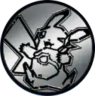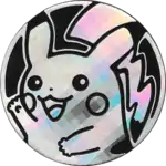 Description:Extra-large-sized, Silver Starlight Holofoil, Black-backed Coin featuring the Pikachu 25th Anniversary emblem released within the Celebrations Mini Tins October 8, 2021