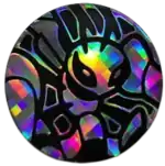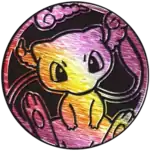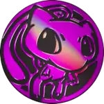 Description:Extra-large-sized, Pink Psychedelic Rainbow Holofoil, Black-backed Coin featuring Mew released within the Fusion Strike Pokémon Center Elite Trainer Box November 12, 2021