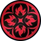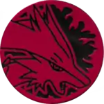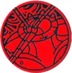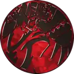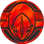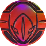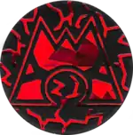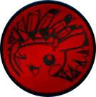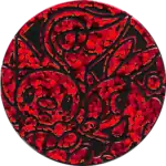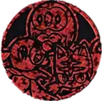 Fire Reward Coin Red Non Holofoil, Black-backed Coin featuring symbols. Awarded to the player when reaching Fire Energy Level 1