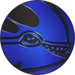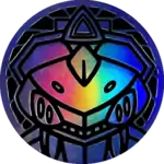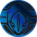 Darkness Reward Coin Dark Blue Non Holofoil, Black-backed Coin featuring symbols. Awarded to the player when reaching Darkness Energy Level 1
