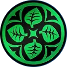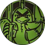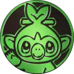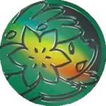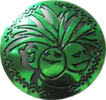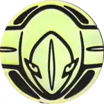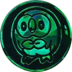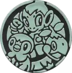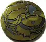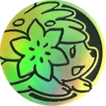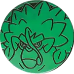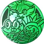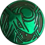 Grass Reward Coin Green Non Holofoil, Black-backed Coin featuring symbols. Awarded to the player when reaching Grass Energy Level 1