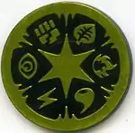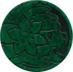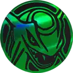 Dragon Reward Coin Green Non Holofoil, Black-backed Coin featuring symbols. Awarded to the player when reaching Dragon Energy Level 1