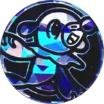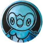 Description:Regular-sized, Blue Mirror Holofoil, Black-backed Coin featuring Piplup; one of ten available from capsule toy vending machines present at Pokémon Centers across Japan from December 16, 2021 and on the Japan Pokemon Centre Website from December 17, 2021