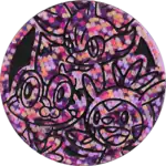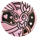 Description:Regular-sized, Pink Mirror Holofoil, Black-backed Coin featuring Sylveon; one of ten available from capsule toy vending machines present at Pokémon Centers across Japan from December 16, 2021 and on the Japan Pokemon Centre Website from December 17, 2021