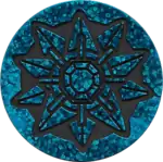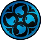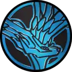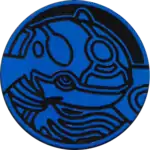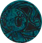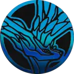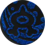 Water Reward Coin Blue Non Holofoil, Black-backed Coin featuring symbols. Awarded to the player when reaching Water Energy Level 1