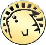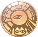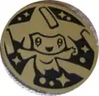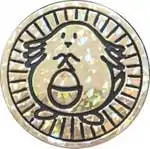 Fairy Reward Coin Gold Non Holofoil, Black-backed Coin featuring symbols. Awarded to the player when reaching Fairy Energy Level 1