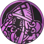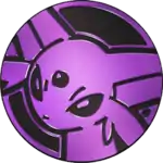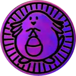 Psychic Reward Coin Purple Non Holofoil, Black-backed Coin featuring symbols. Awarded to the player when reaching Psychic Energy Level 1