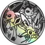 Description:Extra-large-sized, Silver Rainbow Holofoil, Black-backed Coin featuring Vaporeon, Espeon, Glaceon, and Sylveon released within the Evolving Skies Pokémon Center Elite Trainer Box August 27, 2021
