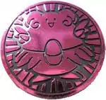 Description:Regular-sized, Pink Confetti Holofoil, Black-backed Coin featuring Morpeko; one of ten available from capsule toy vending machines present at Pokémon Centers across Japan from December 16, 2021 and on the Japan Pokemon Centre Website from December 17, 2021