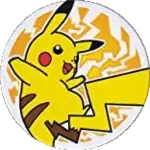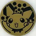 Description:Cardboard Coin featuring Pikachu awarded to those who participated in Pokémon League during the first League Cycle held starting after the release of Base Set in 1999.