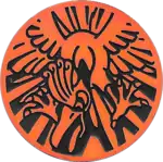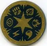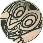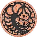 Fighting Reward Coin Brown Non Holofoil, Black-backed Coin featuring symbols. Awarded to the player when reaching Fighting Energy Level 1