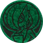 Description:Regular-sized, Green Cracked Ice Holofoil, Black-backed Coin featuring Rayquaza; one of ten available from capsule toy vending machines present at Pokémon Centers across Japan from December 16, 2021 and on the Japan Pokemon Centre Website from December 17, 2021