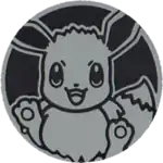 Description:Extra-large-sized, Silver Cracked Ice Holofoil, Black-backed Coin featuring Eevee included in the Eevee 2021 Collector Chest August 23, 2021, 2021