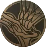 Description:Extra-large-sized, Bronze Mirror Holofoil, Black-backed Coin featuring Noivern released within the Noivern V Battle Deck and V Battle Deck—Rayquaza vs Noivern October 8, 2021