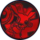 Red Worlds 2015 Pikachu Coin Red Non Holofoil, Black-backed Coin featuring Pikachu. Code card package received by participants of the 2015 World Championships