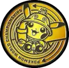 Copper Worlds 2016 Pikachu Coin Copper Non Holofoil, Black-backed Coin featuring Pikachu. Code card package received by participants of the 2016 World Championships