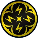 Lightning Reward Coin Yellow Non Holofoil, Black-backed Coin featuring symbols. Awarded to the player when reaching Lightning Energy Level 1