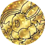 Description:Regular-sized, Yellow Cracked Ice Holofoil, C/G Trademark Black-backed Coin featuring Raichu released within later shipments of the Japanese Kuchiba City Gym July 25, 1998