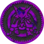 Description:Cardboard Purple Cosmos Holofoil Coin featuring Alakazam released within the Gym Challenge Theme Decks Sabrina, Koga, Blaine, and Giovanni October 16, 2000