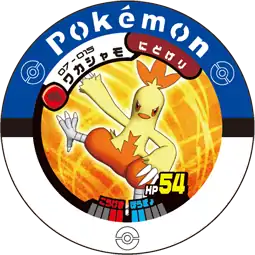 Combusken (Japanese: ワカシャモ Wakasyamo) is a Pokémon Battrio puck. It is part of the Deoxys Assault expansion.