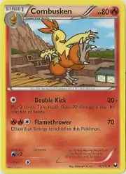 Double Kick and Flamethrower are both moves in the Pokémon games that Combusken can learn. This card's Pokédex entry comes from Pokémon Black and White. Twist Mountain is featured in the illustration.