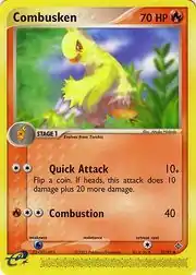 Combusken (Japanese: ワカシャモ Wakasyamo) is a Fire-type Stage 1 Pokémon card. It is part of the EX Dragon expansion.