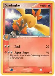 Combusken (Japanese: ワカシャモ Wakasyamo) is a Fire-type Stage 1 Pokémon card. It is part of the EX Holon Phantoms expansion.