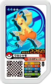 Combusken (Japanese: ワカシャモ Wakasyamo) is a Grade 2 Pokémon Ga-Olé disk. It is part of the second Grand Rush set.