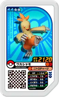 Combusken (Japanese: ワカシャモ Wakasyamo) is a Grade 2 Pokémon Ga-Olé disk. It is part of the fourth Ultra Legend set.
