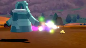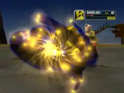 | Watchog holds its arms out and five golden orbs of light appear and circle around its body. When it raises its arms in the air, the five orbs fire at the opponent and stop above it. The orbs then circle around the opponent and float downward to the middle of its body. They then float back up above the opponent's head and grow larger until they explode in a flash of white light, confusing the opponent. | |||