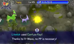 In Red Rescue Team and Blue Rescue Team, and Explorers of Time, Darkness and Sky, Confuse Ray is a move with 13 PP and 100% accuracy. It inflicts Confused status on the enemy in the front. This move is affected by Magic Coat and Taunt.