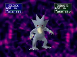 Gothitelle's eyes glow red and its body becomes surrounded in a red outline. The opponent's body glows red and becomes outlined in a red outline. Gothitelle can then move the opponent with its mind. While controlling the opponent, Gothitelle can make its eyes and outline glow brighter, and the glow around the opponent also glows brighter, damaging it. | ||