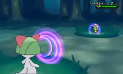 Ralts raises both of its arms in the air and it can control the opponent with its mind; or, Ralts raises both of its arms and an electric-like beam of psychic energy comes out of its hands and hits the opponent. | ||