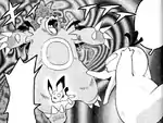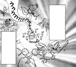 Butterfree's eyes glow light blue or light purple and the opponent becomes outlined in light blue or in light purple. Butterfree can then control the opponent. | ||