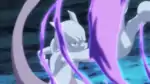Mewtwo thrusts its hand forward, firing a purple blast of energy from it at the opponent, or Mewtwo forms a purple energy barrier in front of its body, blocking the opponent's attack. It then turns the barrier into a sphere of energy that surrounds the opponent, which is then hurled away. | ||