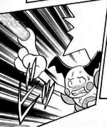 | Medicham holds out its hands and they becomes surrounded in light blue. The opponent becomes surrounded in light blue and Medicham can then control the opponent, or Medicham's eyes glow purple and the opponent becomes surrounded in purple. Medicham can then control the opponent. | |||