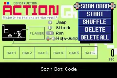 To play Construction: Action, the player must scan a "player" card and at least one "map" card. While it is possible to play with only one map card scanned, a total of six may be added to the game at any time. The current map cards can be played in the order scanned or they can be shuffled.