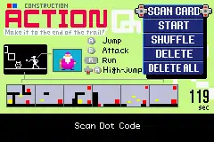 Construction: Action (Japanese: e GAME ZERO ACTION) is the name of a constructible Pokémon-based application for the e-Reader. Using a large variety of compatible cards for the Pokémon Trading Card Game, a player can combine different stages and playable characters to create their own mini "action game". The games are not saved to e-Reader memory and all cards must be re-scanned once the player exits the application.