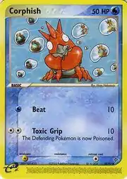 Corphish (Japanese: ヘイガニ Heigani) is a Water-type Basic Pokémon card. It is part of the EX Dragon expansion.