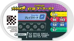 Corviknight (Japanese: アーマーガア Armorga) is a Grade 5 Pokémon Mezastar tag. It is part of the third set.