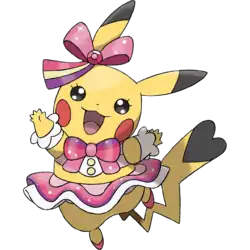 Cosplay Pikachu (Japanese: おきがえピカチュウ Clothes-changing Pikachu) is a variant female Pikachu that is able to be dressed up into five different costumes corresponding to each of the five Contest conditions (Coolness, Beauty, Cuteness, Cleverness, and Toughness), and learn exclusive moves, which are linked to these costumes.