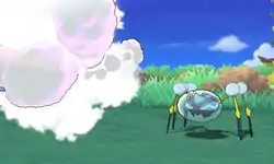 | Skiploom releases multiple see-through balls of cotton from its mouth at the opponent, surrounding them. | |||
