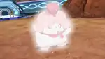 Slurpuff's body shines with bright white energy as multiple white balls of cotton form and surround it and then disappear in a puff of smoke. It then briefly becomes surrounded in a light blue aura, making it more resistant to physical attacks. | ||