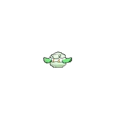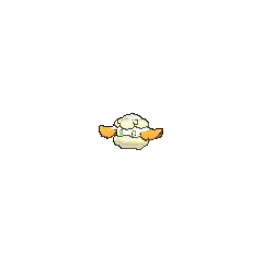 Cottonee is blown around by the wind because of its lightweight composition. The only circumstance in which it cannot be blown by the wind is when it has been soaked by rain, which weighs it down and makes it soggy. Afterwards, this Pokémon will stay under a tree until it dries, so that it may be blown by the wind again. During the mating season, Cottonee blow in the wind in large groups. Its cotton can be used as a defensive mechanism that aids its self-defense. Cotttonee's cotton is used to manufacture top-quality pillows and beds that are soft, puffy, light, and airy. When Eldegoss's cotton is weaved together with Cottonee's, it makes a cloth that is popular with many luxury brands