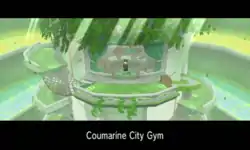 Coumarine Gym (Japanese: ヒヨクジム Hiyoku Gym) is the official Gym of Coumarine City. It is based on Grass-type Pokémon. The Gym Leader is Ramos. Trainers who defeat him receive the Plant Badge.
