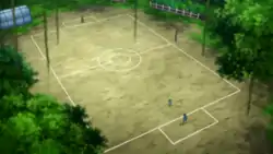 The Gym appeared again in Under the Pledging Tree!, where it was called the Pledging Tree (Japanese: 誓いの樹 Vow Tree). According to a legend, a Trainer and his Pokémon, who had traveled far and wide before eventually settling down to the future location of Coumarine City, had planted the tree long time ago. Once a year, people of the city hold a festival under the tree, where Trainers give presents to their Pokémon to celebrate their bonds with them.